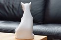 Deze urn in de vorm van een poes/kat heeft een inhoud voor 0.60 liter en 22 cm hoog en geschikt voor (een deelbestemming van) het crematie-as van een poes/kat. De urn is wit glanzend keramiek.