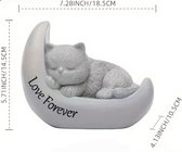 Crematie-as Dieren Urn Poes-Kat met gewenste naam middels goud metallic sign-folie-Keramiek-Wit-Glans-Zittende Poes- inhoud 0.60 liter, geschikt voor deelbestemming van poes/kat, hoogte 22 cm-Urn-Herdenken
