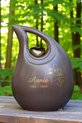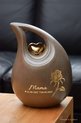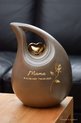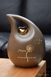 urn-keramiek-crematie-as schuine traan urn- groot model- met uw gewenste naam/datums en pluizenbloem-middels goud metallic sign-folie-bruin-met metalen gouden metallic hartje-inhoud 3,80 liter-meerdere maten beschikbaar