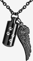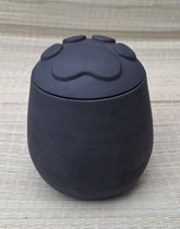 Crematie-as Urn met uw gewenste naam met zilver metallic sign-folie Hart keramiek Medium Zwart met pootafdrukjes en gewenste naam, inhoud 0,70 liter, lengte 14 cm, urn voor dier, crematie-as urn hond, urn kat,urn poes-herinnerings beeld-Herdenken