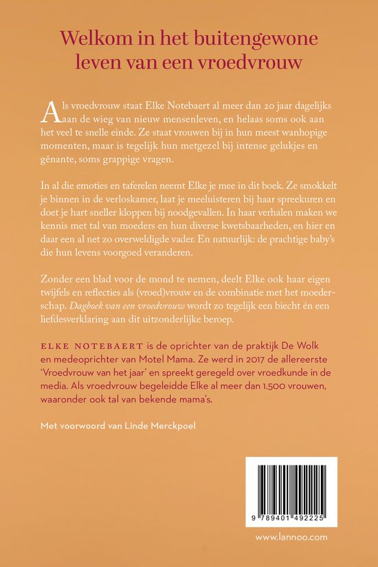 Zonder een blad voor de mond te nemen, deelt Elke ook haar eigen twijfels en reflecties als (vroed)vrouw en de combinatie met het moederschap. Dagboek van een vroedvrouw wordt zo tegelijk een biecht én een liefdesverklaring aan dit uitzonderlijke beroep.