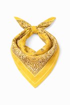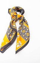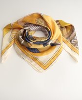 Dames neksjaal Aafke fantasiemotief oranje beige bruin geel abrikoos rotan goud 70x70