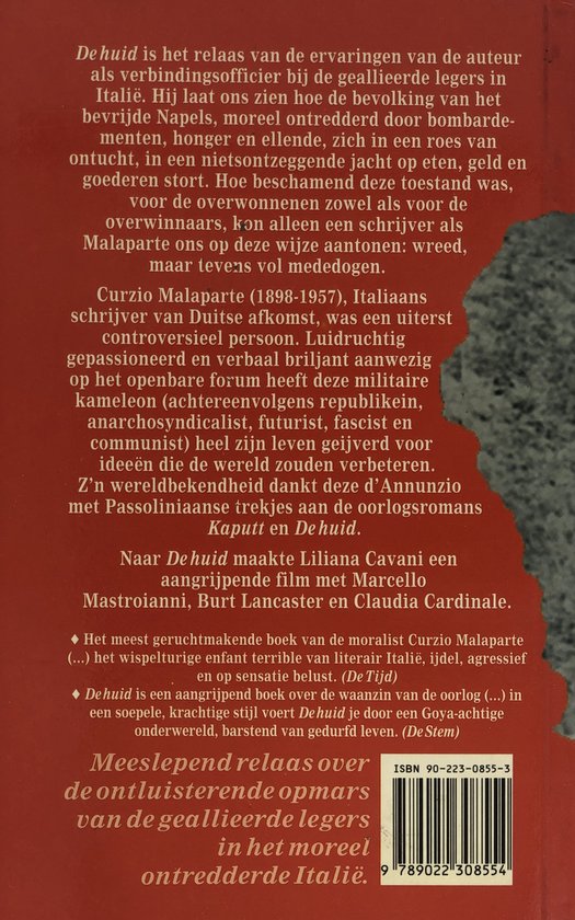 De Huid is het bizarre, onrustbarende, gruwelijke en parodoxale verhaal van de bevrijding van Italië door de Amerikanen, opgetekend door de voormalig oorlogscorrespondent Curzio Malaparte.
