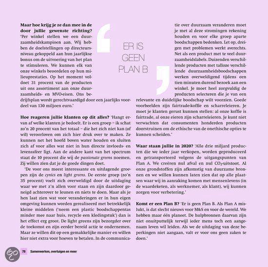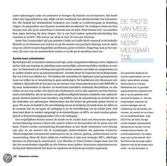 Met overtuigende voorbeelden van Desso, Bavaria en DSM tot Marks & Spencer, Unilever en de EU brengt zij oplossingen in kaart waar mensen in de praktijk iets aan hebben en die hen helpen om hun doelen te bereiken. Zodat ook hun medewerkers, klanten, leveranciers en aandeelhouders er enthousiast voor worden en actief gaan meewerken. Op weg naar het einddoel: een duurzame, multi committed organisatie die een waardevolle bijdrage levert aan de samenleving, met winst voor álle partijen.