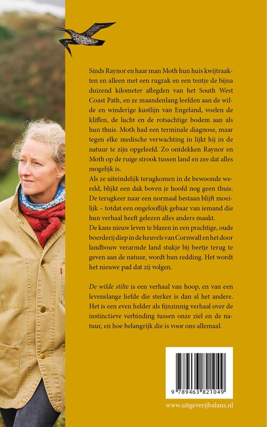 Sinds Raynor en haar man Moth hun huis kwijtraakten en alleen met een rugzak en een tentje de bijna duizend kilometer aflegden van het South West Coast Path, en ze maanden lang leefden aan de wilde en winderige kustlijn van Engeland, voelen de kliffen, de lucht en de rotsachtige bodem aan als hun thuis. Moth had een terminale diagnose, maar tegen elke medische verwachting in lijkt hij in de natuur te zijn opgeleefd. Zo ontdekken Raynor en Moth op de ruige strook tussen land en zee dat alles mogelijk is. Als ze uiteindelijk terugkomen in de bewoonde wereld, blijkt een dak boven je hoofd nog geen thuis. De terugkeer naar een normaal bestaan blijft moeilijk – totdat een ongelooflijk gebaar van iemand die hun verhaal heeft gelezen alles anders maakt. De kans nieuw leven te blazen in een prachtige, oude boerderij diep in de heuvels van Cornwall en het door landbouw verarmde land stukje bij beetje terug te geven aan de natuur, wordt hun redding. Het wordt het nieuwe pad dat zij volgen. De wilde stilte is een verhaal van hoop, en van een levenslange liefde die sterker is dan al het andere. Het is een even helder als fijnzinnig verhaal over de instinctieve verbinding tussen onze ziel en de natuur, en hoe belangrijk die is voor ons allemaal. Raynor Winn (1963) debuteerde overwel digend met Het zoutpad, dat uitgroeide tot een internationale bestseller. Zij woont en werkt in Cornwall.