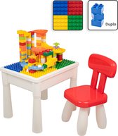 Kindertafel met 1 Stoeltje - Speeltafel met bouwplaat en vlakke kant - Geschikt voor Lego® & Duplo® Bouwstenen