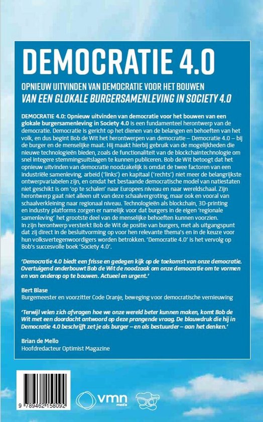 Bob de Wit herdefinieert wat democratie in het digitale tijdperk kan zijn. Met een diepgaande blik op de integratie van technologie, zoals blockchain, om directe, integere participatie te verzekeren, biedt dit boek een frisse en noodzakelijke visie op hoe we onze samenleving kunnen vormgeven. Van schaalverkleining naar regionaal niveau tot het versterken van de burgerstem, 'Democratie 4.0' is niet alleen een vervolg op het baanbrekende 'Society 4.0', maar een essentiële blauwdruk voor een rechtvaardige, betrokken, en toekomstbestendige democratie.