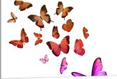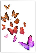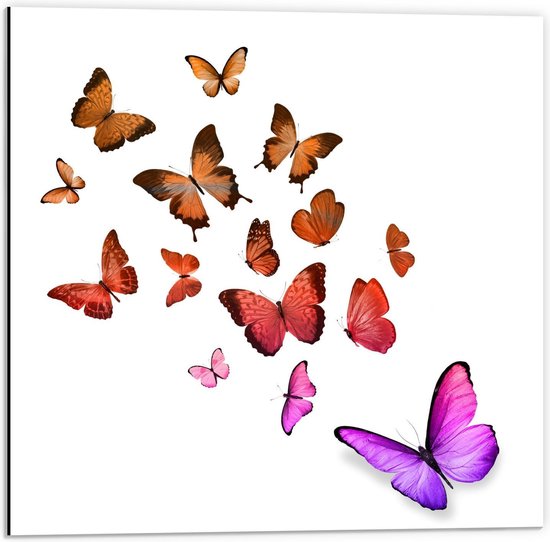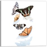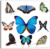 Dibond - Groep Vlinder op Witte Achtergrond - 50x50cm Foto op Aluminium (Wanddecoratie van metaal)