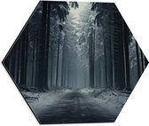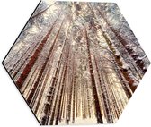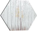 Dibond Hexagon - Bomen - Bossen - Boomstammen - Wit - Natuur - 40x34.8 cm Foto op Hexagon (Met Ophangsysteem)