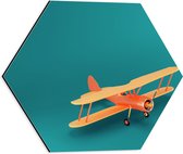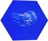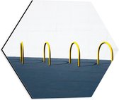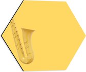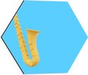Dibond Hexagon - Gele Saxofoon tegen Blauwe Achtergrond - 40x34.8 cm Foto op Hexagon (Met Ophangsysteem)