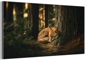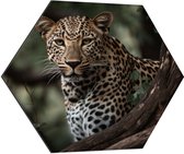 Dibond Hexagon - Gevlekte Tekkel op Boomstammen bij Veldfles - 80x69.6 cm Foto op Hexagon (Met Ophangsysteem)