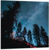 Dibond - Hoge Bomen onder Sterren - 100x100cm Foto op Aluminium (Wanddecoratie van metaal)