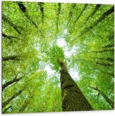 Dibond - Onderaanzicht van Hoge Bomen - 100x100cm Foto op Aluminium (Wanddecoratie van metaal)