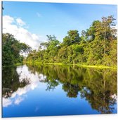 Dibond - Bomen langs Heldere Rivier - 100x100cm Foto op Aluminium (Wanddecoratie van metaal)
