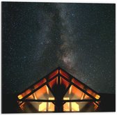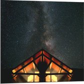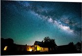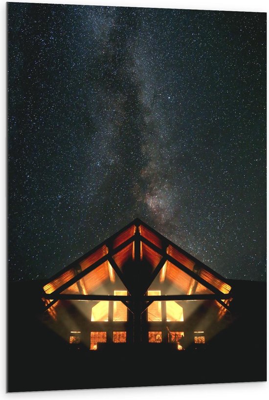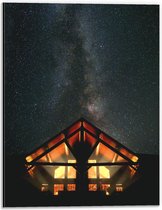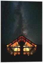 Dibond - Klein Huisje onder Sterrenhemel - 80x120cm Foto op Aluminium (Met Ophangsysteem)