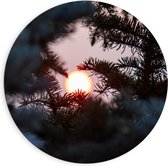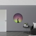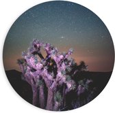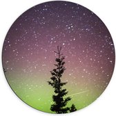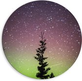Dibond Muurcirkel - Bomen - Sterren - Noorderlicht - Paars - 90x90 cm Foto op Aluminium Muurcirkel (met ophangsysteem)