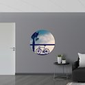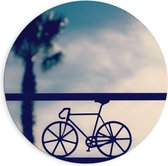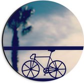 Dibond Muurcirkel - Miniatuur Fiets in Brug voor Palmboom - 100x100 cm Foto op Aluminium Muurcirkel (met ophangsysteem)