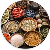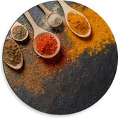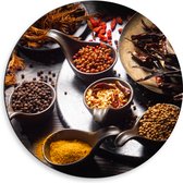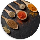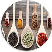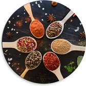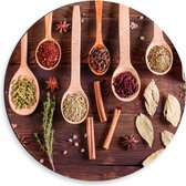 Dibond Muurcirkel - Schuine Lepels met Specerijen - 50x50 cm Foto op Aluminium Muurcirkel (met ophangsysteem)