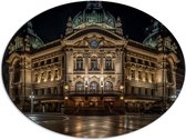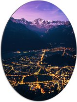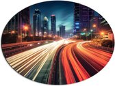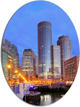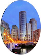Dibond Ovaal - Gebouwen - Lampen - Stad - 51x68 cm Foto op Ovaal (Met Ophangsysteem)
