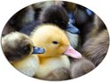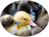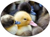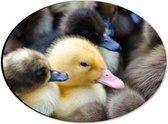 Dibond Ovaal - Groep Zwarte en Gele Kuikentjes - 108x81 cm Foto op Ovaal (Met Ophangsysteem)