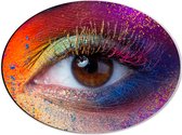 Dibond Ovaal - Vrouw - Lichten - Kleuren - Glitter - Make-Up - - 40x30 cm Foto op Ovaal (Met Ophangsysteem)