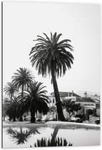 Dibond - Vakantieplekje met Palmbomen (zwart/wit) - 80x120cm Foto op Aluminium (Met Ophangsysteem)