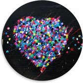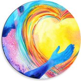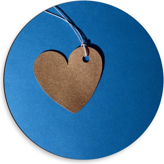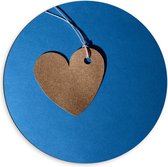 Dibond Wandcirkel - Bruin Hart op Blauwe Achtergrond - 50x50cm Foto op Aluminium Wandcirkel (met ophangsysteem)