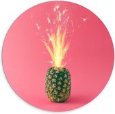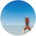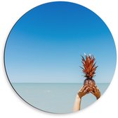 Dibond Wandcirkel - Gouden Ananas in de Lucht - 100x100cm Foto op Aluminium Wandcirkel (met ophangsysteem)