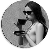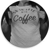 Dibond Wandcirkel - ''So in Love WIth Coffee'' T-shirt in de Sportschool (zwart/wit) - 40x40cm Foto op Aluminium Wandcirkel (met ophangsysteem)