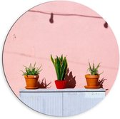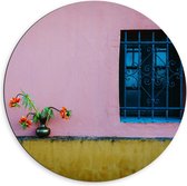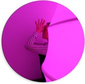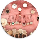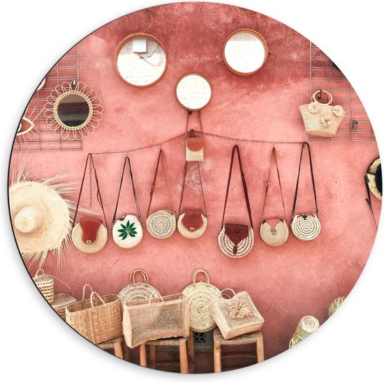 Dibond Wandcirkel - Tasjes Hangend aan een Roze Muur - 60x60cm Foto op Aluminium Wandcirkel (met ophangsysteem)