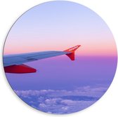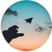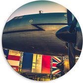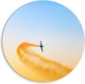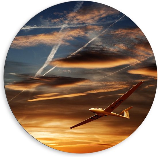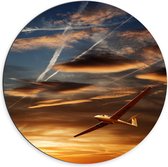 Dibond Wandcirkel - Vliegtuig in Gouden Lucht - 80x80cm Foto op Aluminium Wandcirkel (met ophangsysteem)