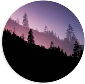 Dibond Wandcirkel - Vlonder onder Paarse Bomen - 90x90cm Foto op Aluminium Wandcirkel (met ophangsysteem)