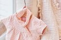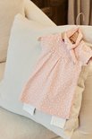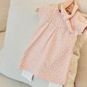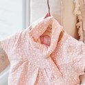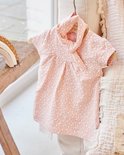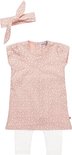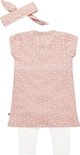 Dirkje set bestaande uit een jurkje met legging en haarband. Het jurkje met korte mouwen is roze met een print met blaadjes. De legging is wit van kleur en het bijpassende haarbandje is roze met blaadjesprint.