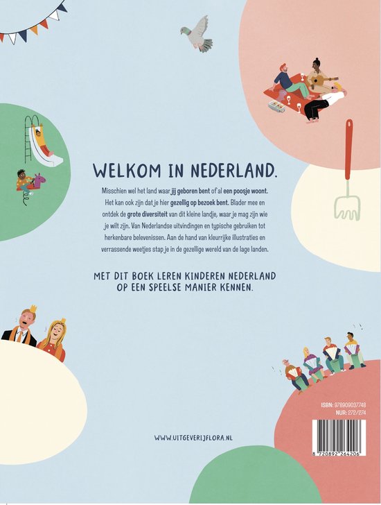 Welkom in Nederland Misschien wel het land waar jij geboren bent of al een poosje woont. Het kan ook zijn dat je hier gezellig op bezoek bent. Blader mee en ontdek de grote diversiteit van dit kleine landje, waar je mag zijn wie je wilt zijn. Van Nederlandse uitvindingen en typische gebruiken tot herkenbare belevenissen. Aan de hand van kleurrijke illustraties en verrassende weetjes stap je in de gezellige wereld van de lage landen. Met dit boek leren kinderen Nederland op een speelse manier kennen. Thema's: Nederland, we zijn hier samen, inclusiviteit, tradities, jezelf zijn. Specificaties: 34 x 26 cm 32 pagina's Gemaakt van kwalitatief dik karton, 335 g/m2 Gedrukt en ingebonden in Europa Voor kids vanaf 4 jaar