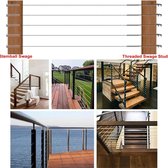 Met deze set heeft u alles in huis om ter plekke een railingdraad te plaatsen. Het voordeel van deze doe-het-zelf set is dat u niet van tevoren uw maten precies hoeft door te geven, maar dit kan doen vlak voor u de kabel gaat plaatsen.