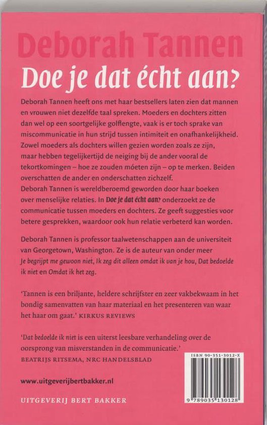 Interessant boek over (mis)communicatie tussen moeders en dochters. Leest makkelijk weg al doet het af en toe wel erg Amerikaans aan.