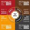 Houd jij van een sterke en krachtige melange? Dan past koffie uit een Intens smaakprofiel goed bij jou! De koffie bevat een veelzijdige, volle smaak doordat bittere en zoete tonen mooi geaccentueerd worden. Als je deze koffie proeft kunnen tonen van caramel, chocolade, noten en bloemen opvallen. Probeer ook eens onze Intens of mocca koffiebonen!