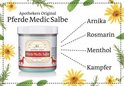 De nummer 1 paardenzalf in Duitsland. Het in Duitsland zeer veel gebruikte spier- en peeswrijfmiddel voor sporters en actieve ouderen die last hebben van onwillige spieren en pezen, spit, peesverrekkingen, ischias en chronische spier- en gewrichtspijnen. De bijzondere combinatie van hoogwerkzame en natuurlijke ingrediƫnten is weldadig en verzorgend voor het hele lichaam en het totale spierstelsel. Na het opbrengen van de gel voelt u in de eerste fase een weldadige en verfrissende koeling. Daarna volgt een aangename opwarming. Dit wordt het twee-fasen effect genoemd. Sinds jaren brengt deze paardenzalf verlichting voor: Spierpijn, artrose, artritis, ontstekingen, tenniselleboog, spiervermoeidheid, verrekkingen, pijn in knieƫn en gewrichten, verstuikingen, kneuzingen, zwellingen, reuma, krampen in benen en voeten, vermoeide benen, koude handen en voeten.