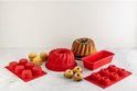 Bakvormen gemaakt van silicone hebben een kortere baktijd en zijn dus energiebesparend. Dankzij het soepele materiaal van de bakvorm en de antikleeflaag komt de bereiding vanzelf los. De bakvorm is bestand tegen temperaturen van -40 °C tot 230 °C. Deze bakvorm mag rechtstreeks vanuit de diepvriezer in de oven of microgolfoven geplaatst worden en daarna in de vaatwasmachine.Specificatie: