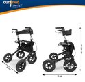 Dunimed Premium Lichtgewicht Rollator met Grote Luchtbanden - Rollator voor Buiten Inclusief Stokhouder en Tas - Dubbel opvouwbaar - Met Parkeerrem en Stevige Rugband - Zwart