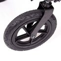 Hij rijdt prima met zijn dikke luchtbanden, ook buiten op de stoep.