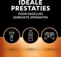- *Commerciële garantie van de minimale gemiddelde duur in de 2021 IEC-test van C-batterijen. Resultaten kunnen variëren per apparaat of gebruikspatroon (IEC-website). **indien op kamertemperatuur bewaard