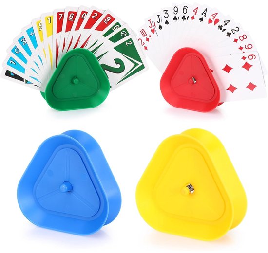 Kyto 4 stuks kaarthouders voor 35 kaarten kaartspel houder kaartenhulp kinderen kunststof kleurrijk