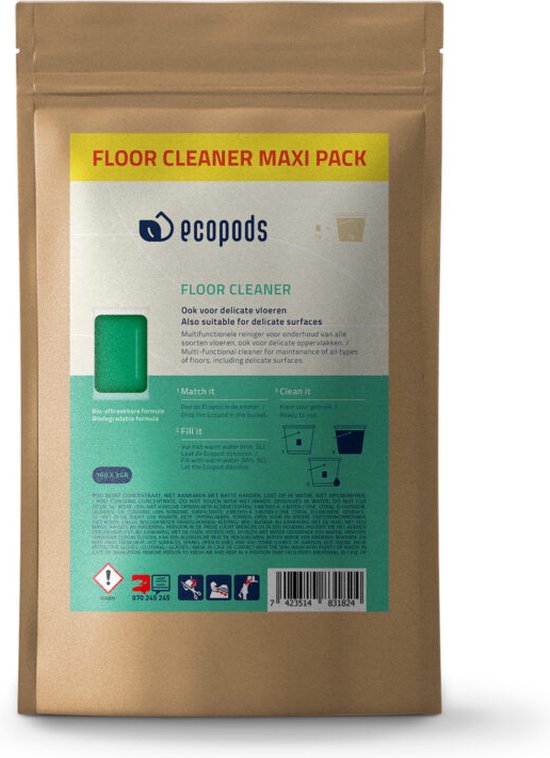 Geconcentreerd natuurlijke vloerreiniger in capsulevorm, te gebruiken in een emmer water. Zero Waste schoonmaken met minimale milieu impact dankzij Ecopods. Dankzij deze handige maxi pack haalt u meteen voor lange tijd de Floor Cleaner in huis, zonder dat u veel plaats hoeft te verliezen!
