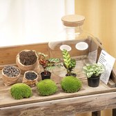 Je DIY terrarium kit komt met alles wat je nodig hebt om direct te starten: het terrarium, LED-verlichte kurk, een selectie mini plantjes, substraat, kokostabletten, decoratief mos, en een eenvoudig te volgen handleiding. Alles verpakt in materialen die de aarde respecteren. Bereid je voor op een groene levering die net zo bewust is als het prachtige ecosysteem dat je gaat creëren.