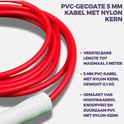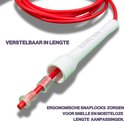 Verstelbaar op lengte: Dit cardio-springtouw heeft een verstelbare lengte tot maximaal 3 meter, een dikte van 5 mm en weegt 0,1 kg. Het wordt geleverd in 14 verschillende kleuren met een garantie van 90 dagen op het touw en een levenslange garantie op de handvatten.