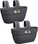 Elho Vibia Campana Easy Hanger - Balkonbakken met Ophanging - 100% Gerecycled Plastic - Set van 2 - L36 x B24.1 x H26.5 cm - Antraciet