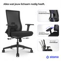 Ervaar ergonomisch genot met de Stane Pro, waar jouw comfort samensmelt met een gezonde zithouding. Met de in hoogte verstelbare lendensteun, 3D-armleuningen en flexibele rugkanteling pas je de stoel aan aan jouw lichaam.