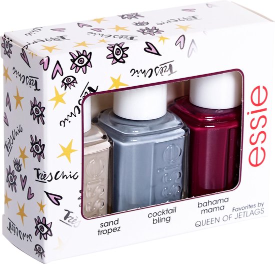 Fashion blogger Noor de Groot van Queen of jetlags is groot fan van essie. Deze giftset bevat haar drie favorites: de nude Sand Tropez, chic lila-grijs Cocktail Bling en bordeaux Bahama Mama.