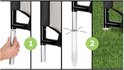 je kan kiezen om vooraan pootjes te gebruiken (waardoor jeze makkelijk kan verzetten) of om vooraan met ankers in de grond te bevestigen.